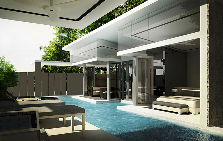Luxurious Villas of different sizes are strung along the hilly area of the shoreline. Each villa is given generous landscape areas with a pool and terrace areas. Health and healing facilities could be done in each individual villa or it is also made available to guests at the main Wellness Block.
